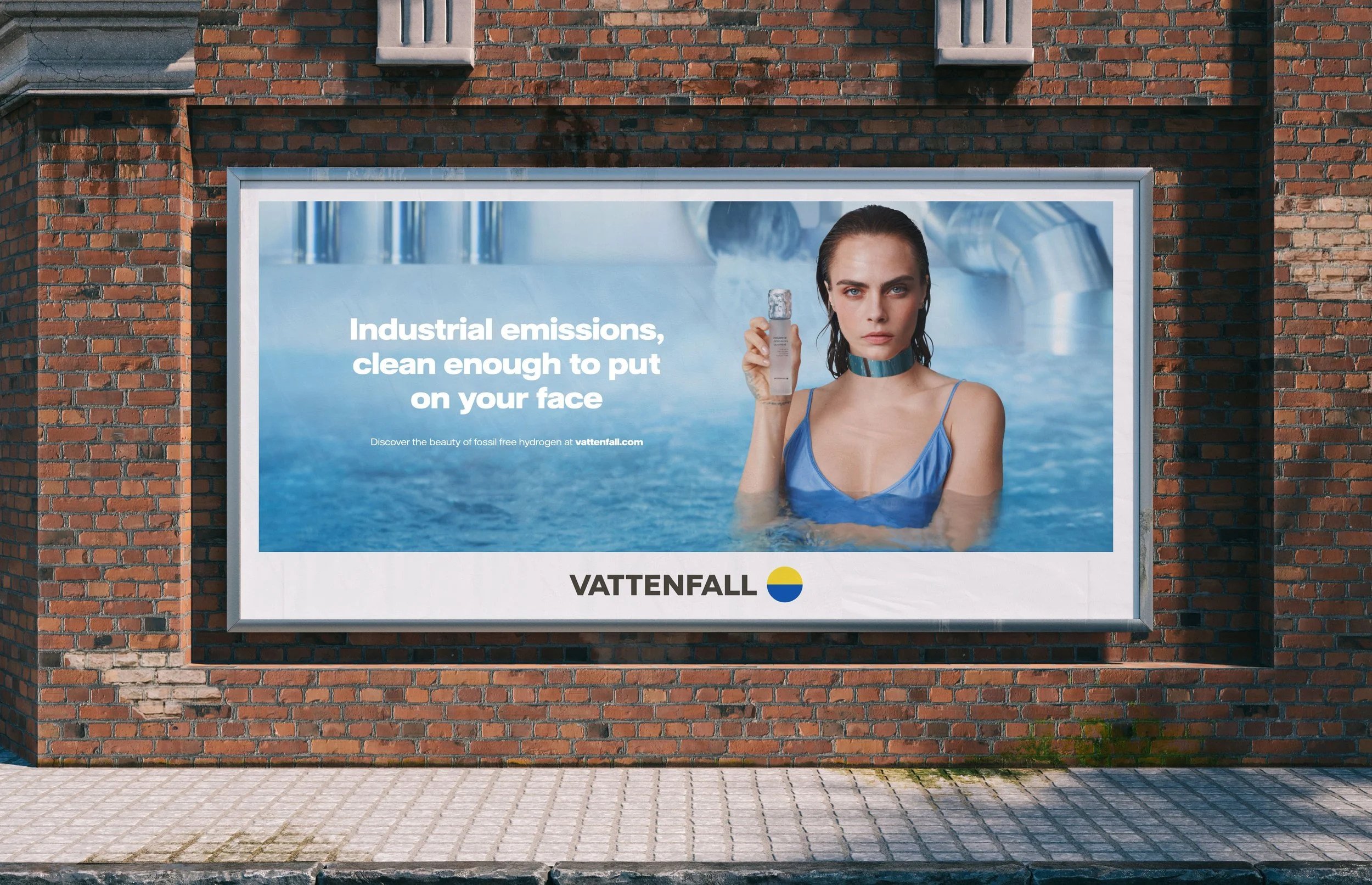 Fun one! A cool thing the good people at Vattenfall are working with, besides delivering energy to homes, is helping heavy emitting industries cut C02 emissions. They do this, by replacing fossil fuels in production with fossil free hydrogen – a powerful fuel that emits nothing but water. To highlight their work and educate the broader public about fossil free hydrogen, we turned emissions from a hydrogen-powered steel plant into the ultimate proof of cleanliness: a face mist. And to make sure people took notice, we teamed up with supermodel and climate advocate Cara Delevingne who helped us put fossil free hydrogen on everyone’s lips.. and faces.